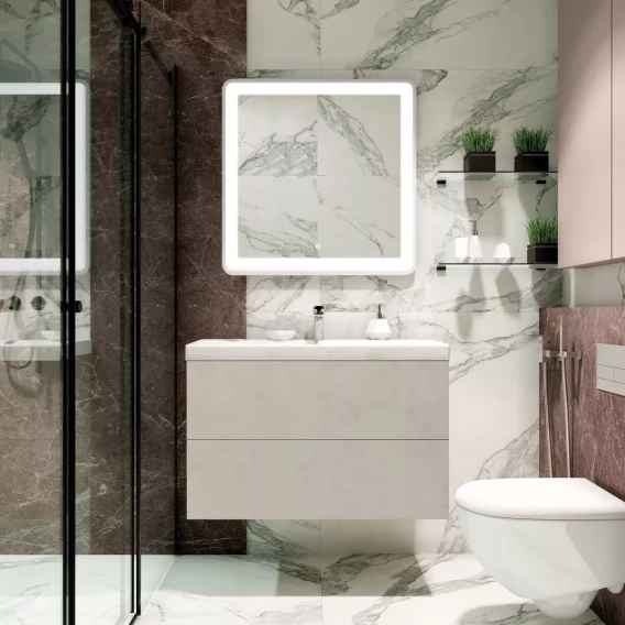 Тумба с раковиной Orange Line Li-70TuwMDF+B05-480W 70,2 см, подвесная, со столешницей, белый матовый