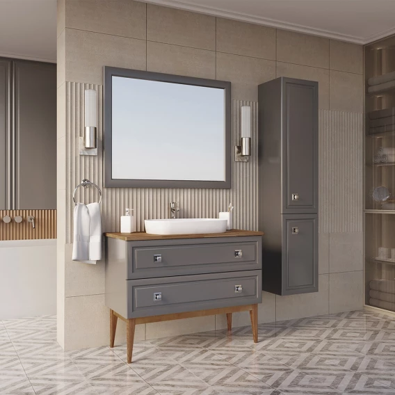 Тумба под раковину ASB-Woodline Каталина 12096 99 см, напольная, со столешницей, серый матовый