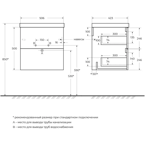Тумба под раковину BelBagno Due DUE-500-2C-SO-SAT-P 50,6 см, подвесная, сатин матовый