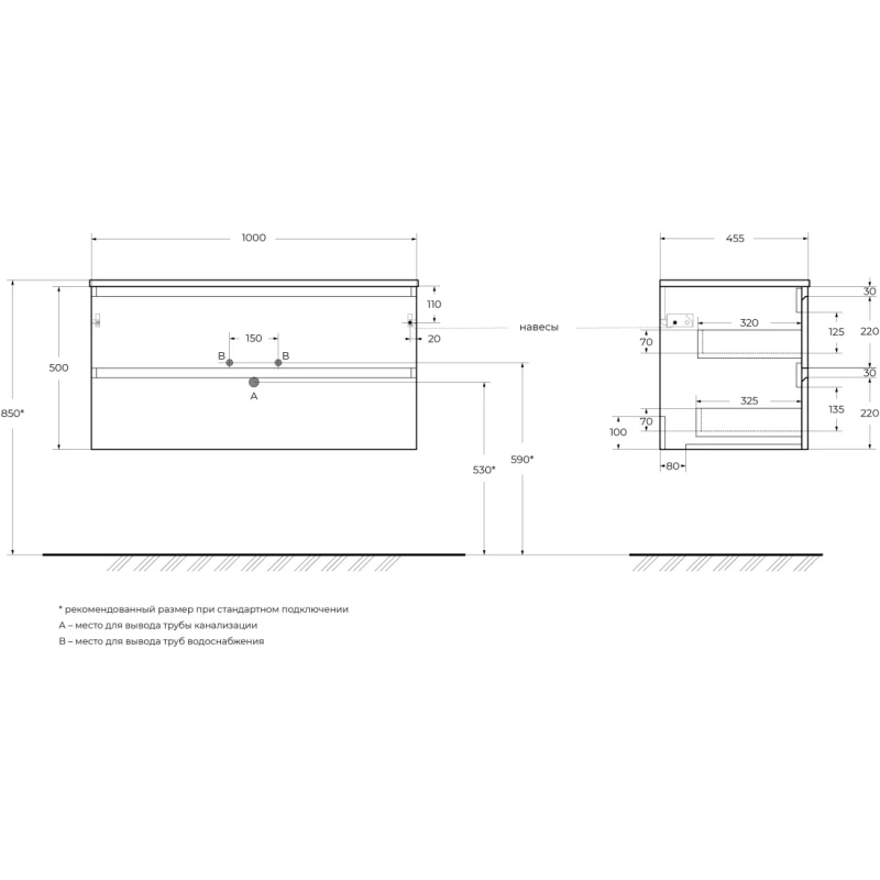 Тумба под раковину BelBagno Marino Rovere Nature Grigio MARINO-CER-N-1000-2C-SO-RNG-P 99,6 см, подвесная, дуб Grigio