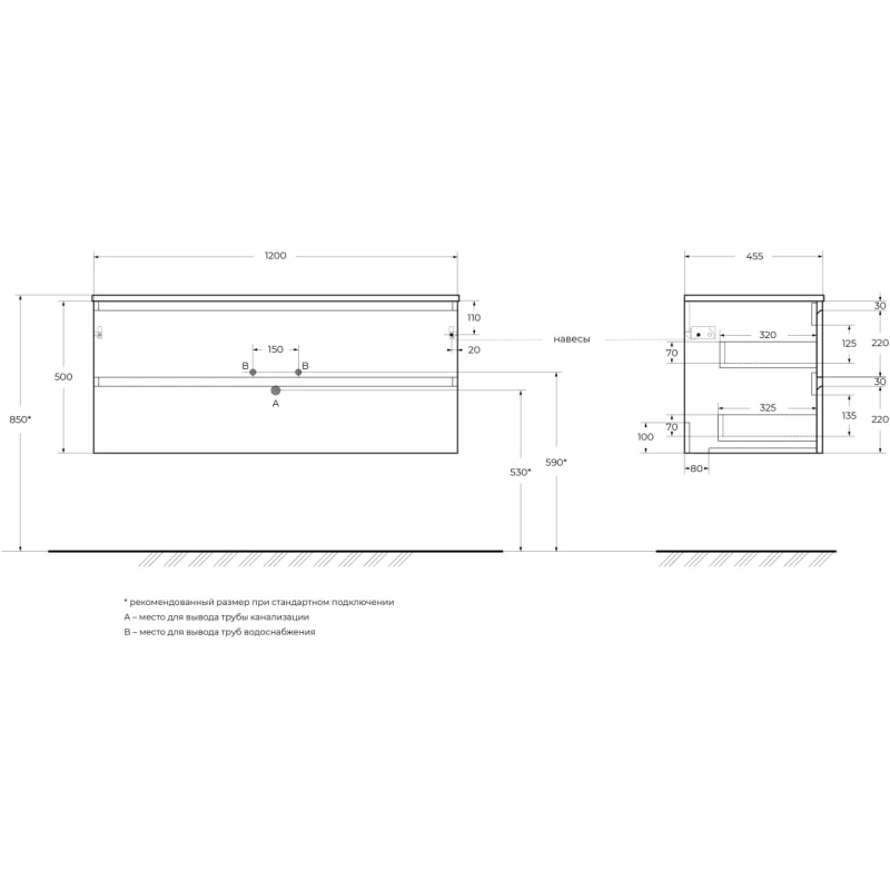 Тумба под раковину BelBagno Kraft KRAFT-1200-2C-SO-VO 120 см, подвесная, еловый матовый