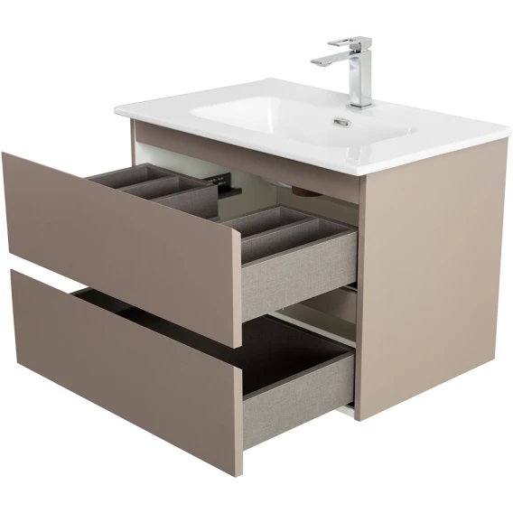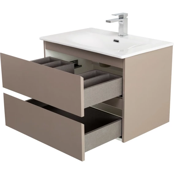 Тумба с раковиной Orange Line Li-60TuLMDF+B04-405W 60,2 см, подвесная, со столешницей, латте матовый