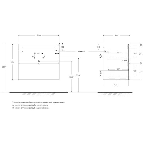 Тумба под раковину BelBagno Uno UNO-800-2C-SO-VO 80 см, подвесная, еловый матовый