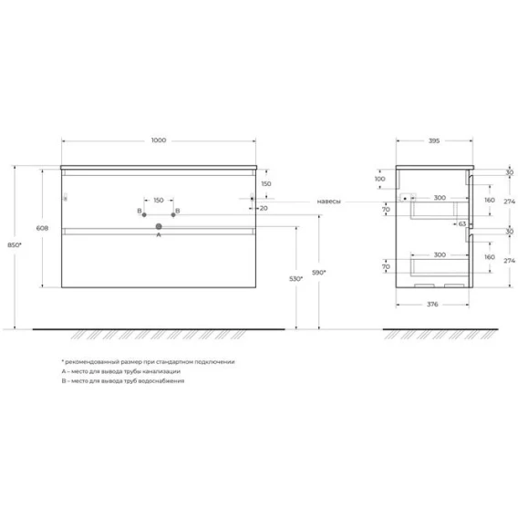 Тумба под раковину BelBagno Uno UNO-MINI-1000-2C-SO-VO 100 см, подвесная, еловый матовый