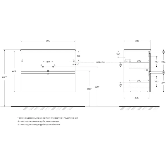 Тумба светло-серый матовый 60 см Style Line Марелла СС-00002406
