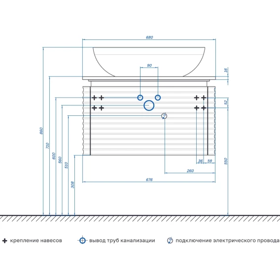 Крепление, Механизм доводчика, Ящик, Подсветка, Сенсорный выключатель, Столешница