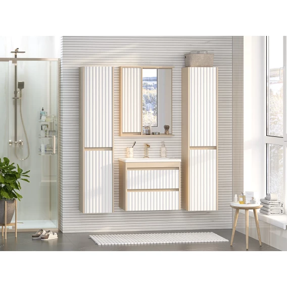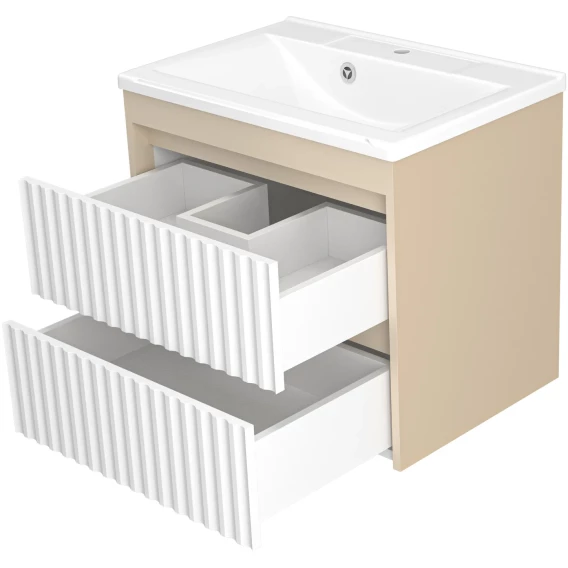 Тумба под раковину Brevita Balaton BAL-06065-03-012Я 62,5 см, подвесная, белый матовый/бежевый матовый
