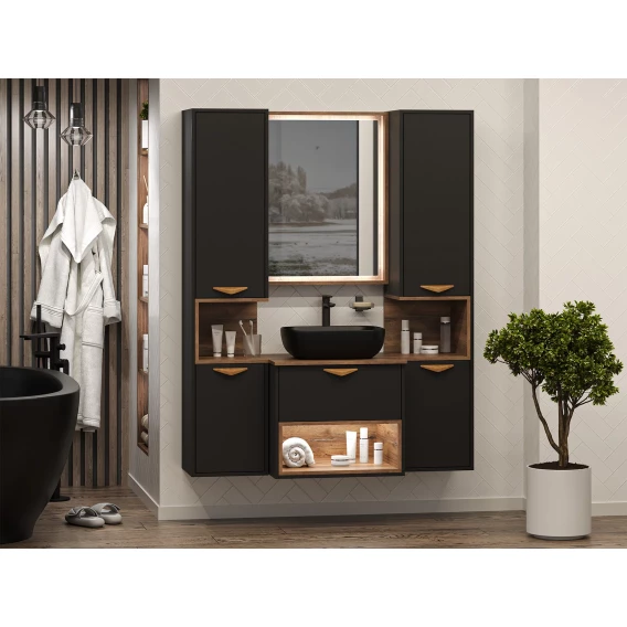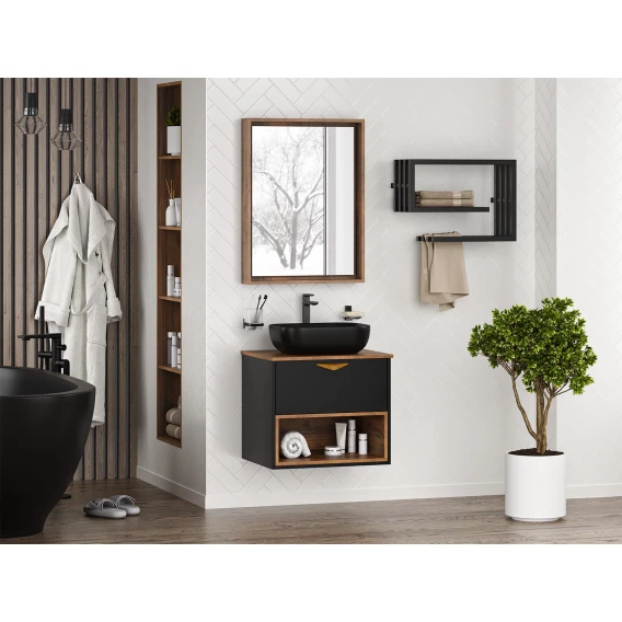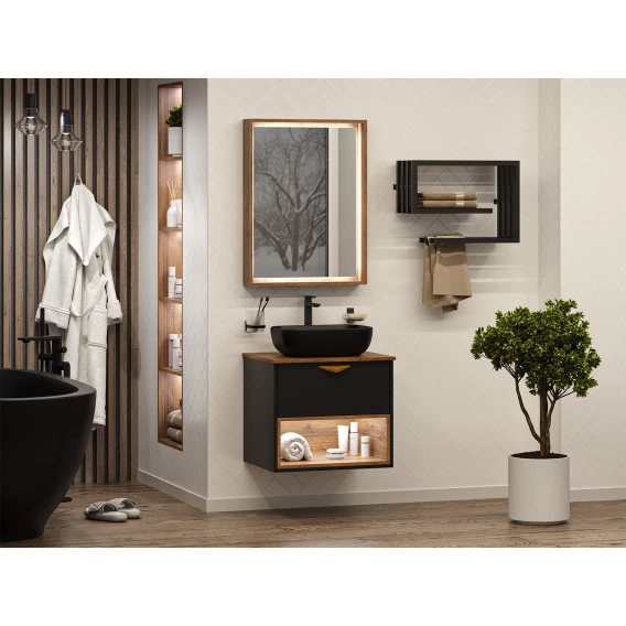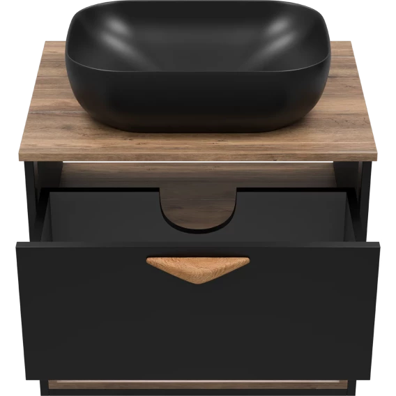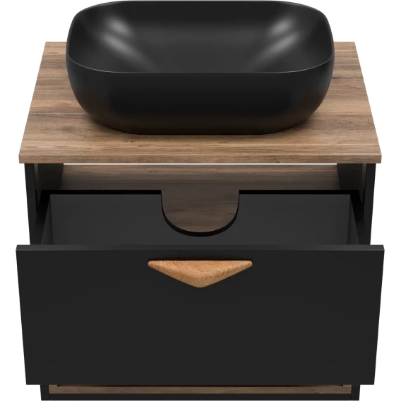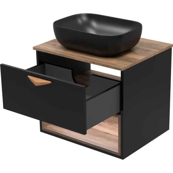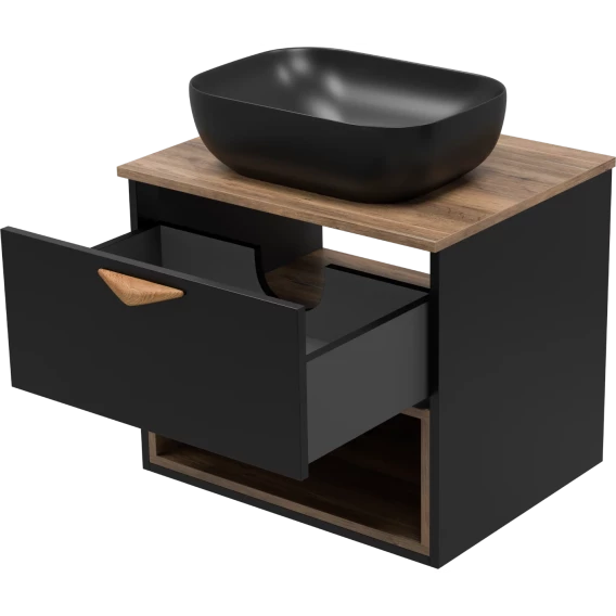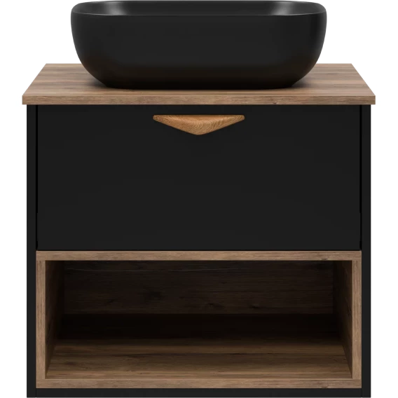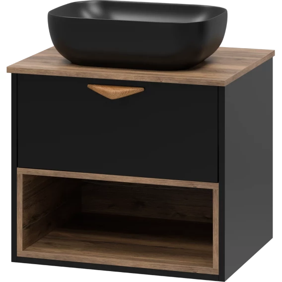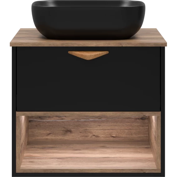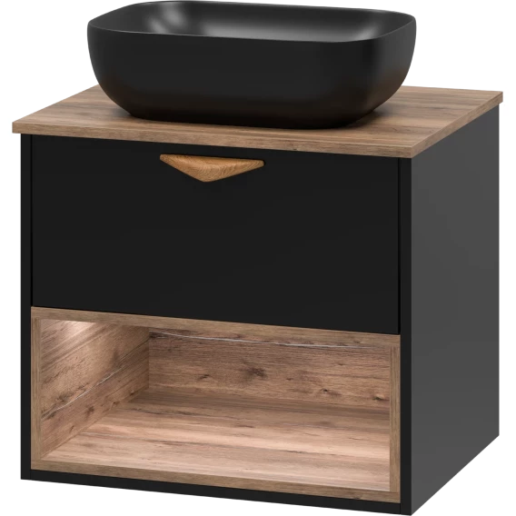 Тумба под раковину Brevita Bergen BER-07060-19-02-1Я 60,4 см, подвесная, со столешницей, подсветкой, черный матовый/дуб галифакс