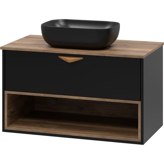 Тумба под раковину Brevita Bergen BER-07090-19-02-1Я 90,4 см, подвесная, со столешницей, подсветкой, черный матовый/дуб галифакс