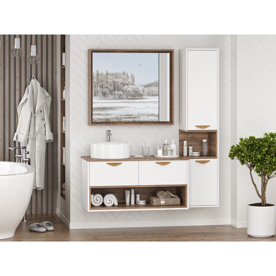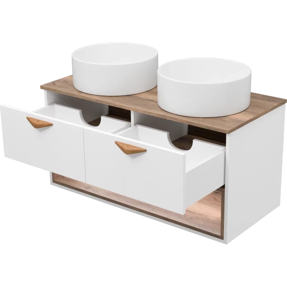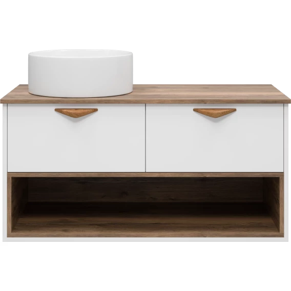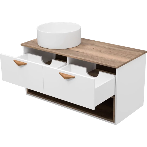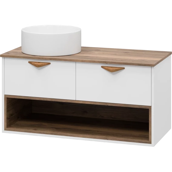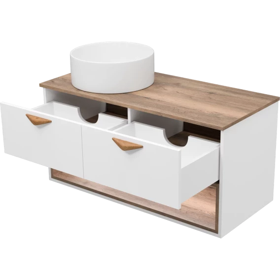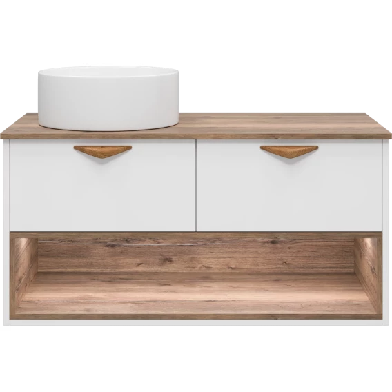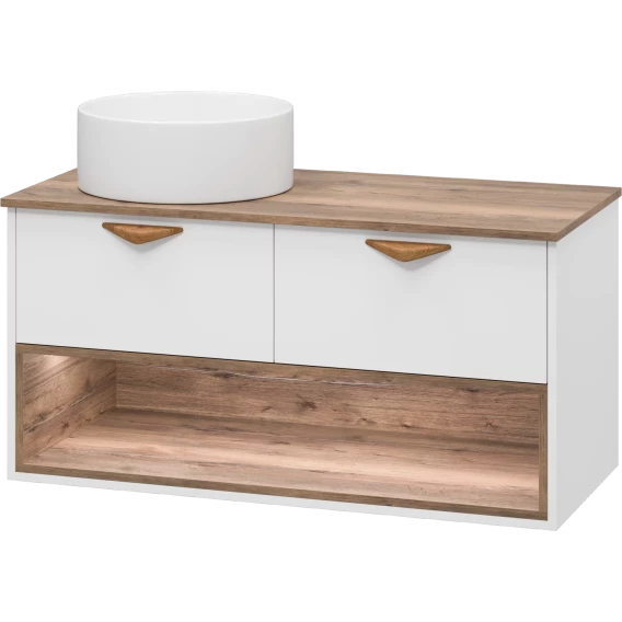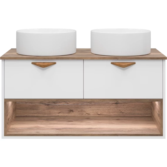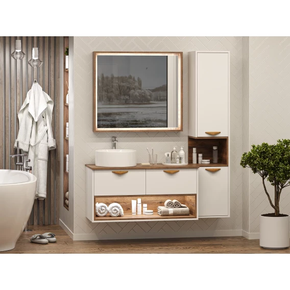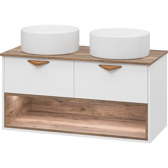 Тумба под раковину Brevita Bergen BER-07105-19-01-2Я 105,4 см, подвесная, со столешницей, подсветкой, белый матовый/дуб галифакс