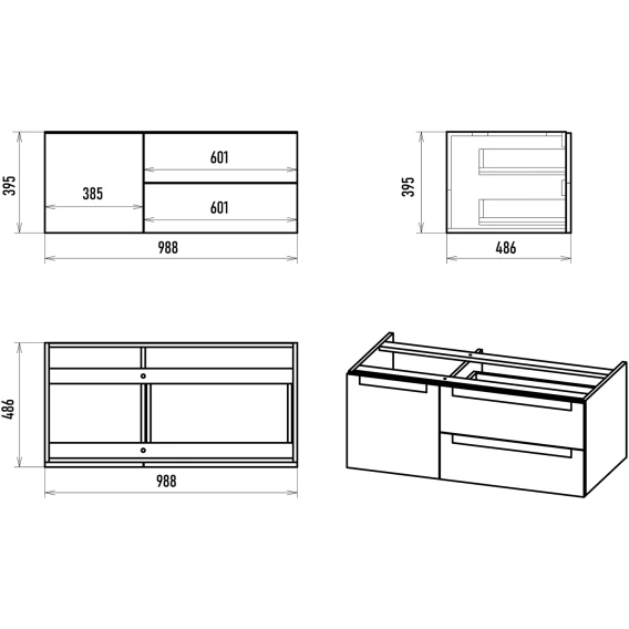 Тумба под раковину Brevita Cargo CAR-01100-021П2Я 98,8 см, подвесная, черный матовый
