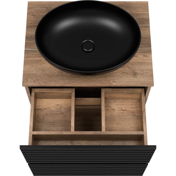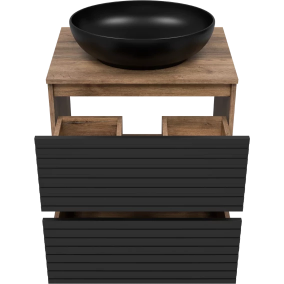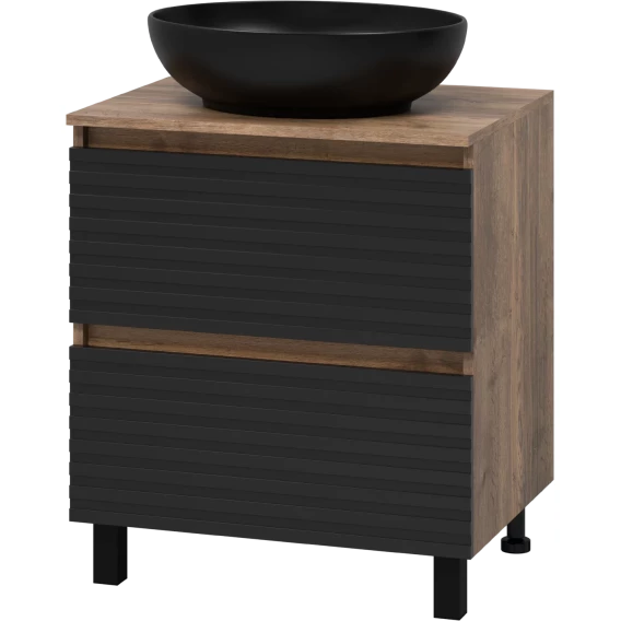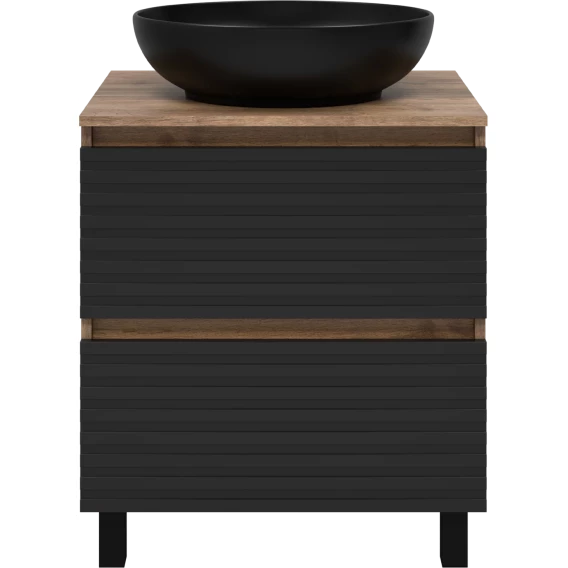 Тумба под раковину Brevita Dakota DAK-07060-19/02-2Я 60,4 см, напольная, со столешницей, черный матовый/дуб галифакс