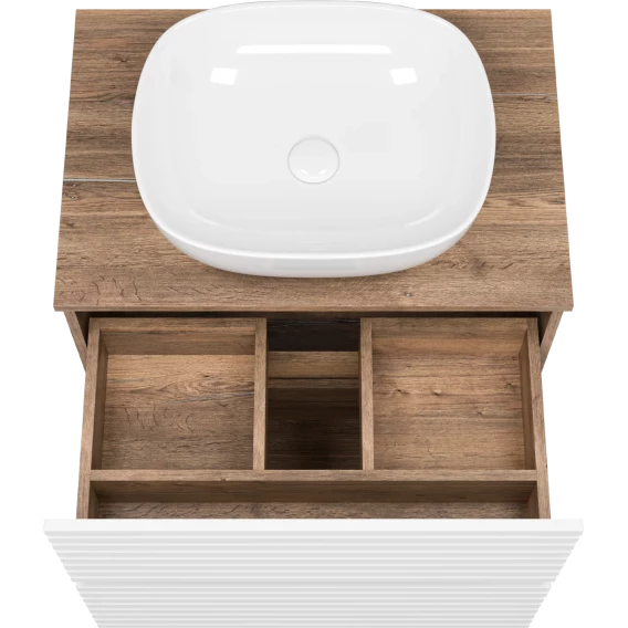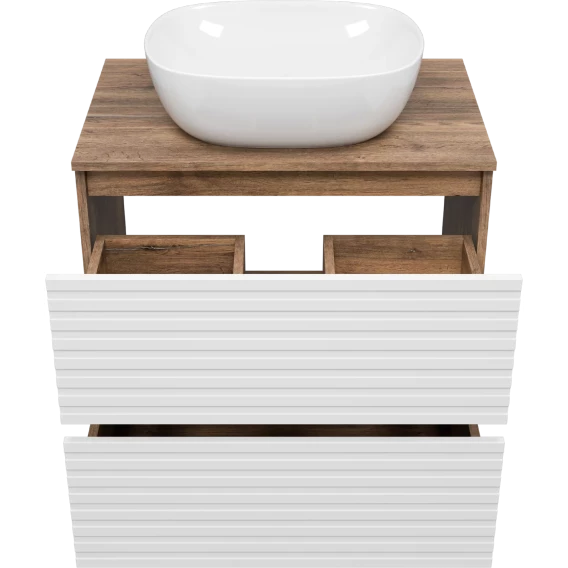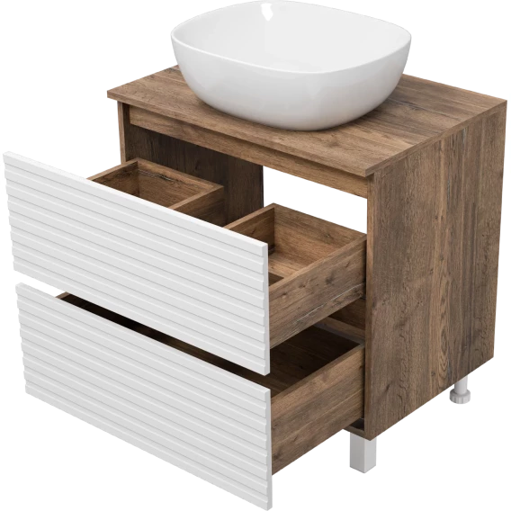 Тумба под раковину Brevita Dakota DAK-07070-19/01-2Я 70,4 см, напольная, со столешницей, белый матовый/дуб галифакс