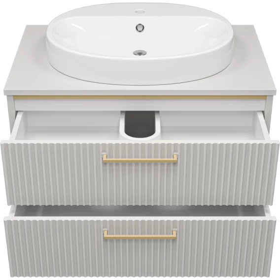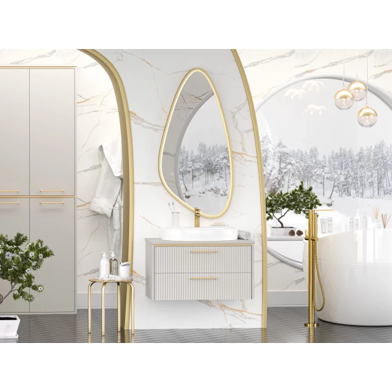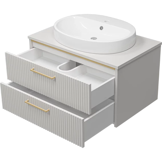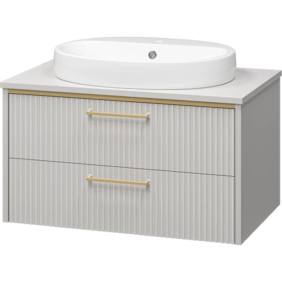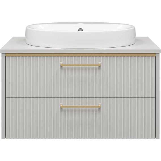 Тумба под раковину Brevita Elche ELC-01080-0502Я 81,2 см, подвесная, со столешницей, серый кашемир матовый/золотой матовый