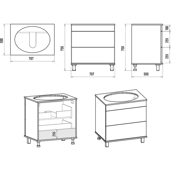 Крепление, Механизм доводчика, Ящик, Ручки, Ножки, Столешница