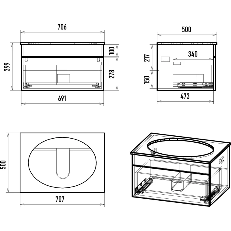 Крепление, Механизм доводчика, Ящик, Ручка, Столешница