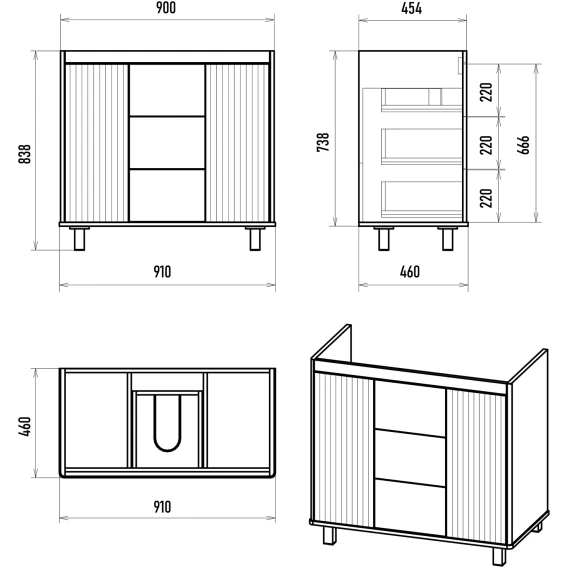 Тумба под раковину Brevita Risacca RIS-06090-0342Я 91 см, напольная, серый матовый