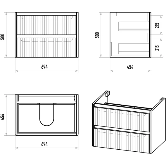 Тумба под раковину Brevita Riva RIV-07070-0102Я 69,4 см, подвесная, белый глянец