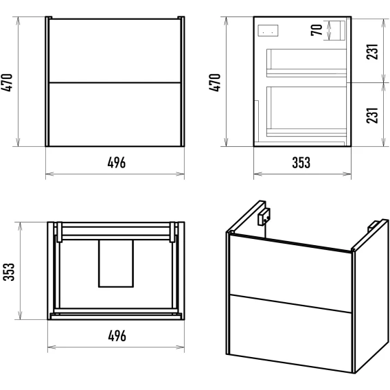 Тумба под раковину Brevita Toy TOY-09050-0102Я 49,6 см, подвесная, белый глянец