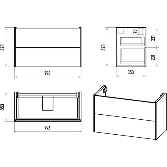 Тумба под раковину Brevita Toy TOY-09080-0102Я 79,6 см, подвесная, белый глянец