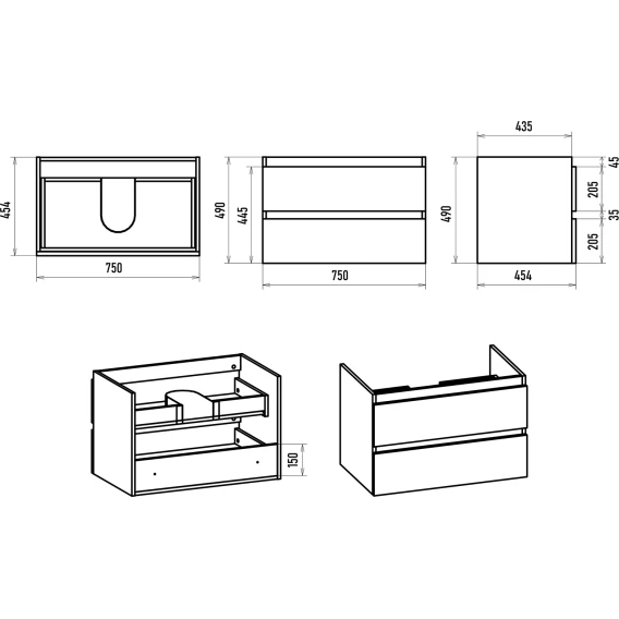 Тумба под раковину Brevita Victory VIC-09080-0102Я 75 см, подвесная, белый матовый