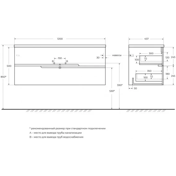 Тумба под раковину Cezares Duet DUET-N-1200-2C-SO-2-BL 120 см, подвесная, Bianco Lucido