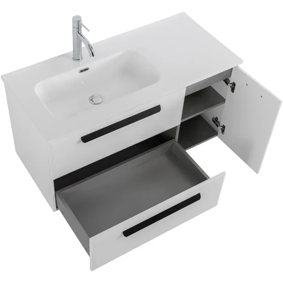 Тумба под раковину Cezares Eco ECO-CER-N-1000-2C-1A-SO-BL-L 100 см L, подвесная, Bianco Lucido