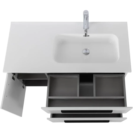 Тумба под раковину Cezares Eco ECO-CER-N-1000-2C-1A-SO-BL-R 100 см R, подвесная, Bianco Lucido