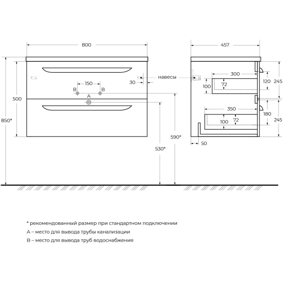 Тумба под раковину Cezares Eco ECO-CER-N-800-2C-SO-GR-P 80 см, подвесная, Grafito
