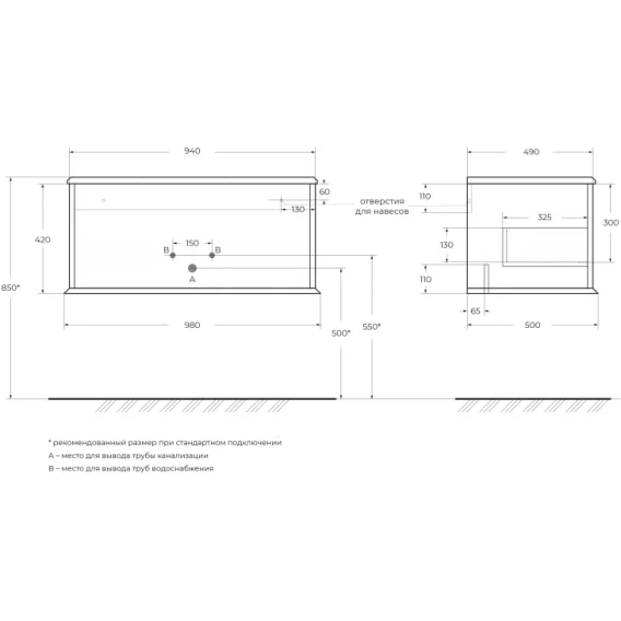 Тумба под раковину Cezares Idra 55809 98 см, подвесная, Rovere Tabacco