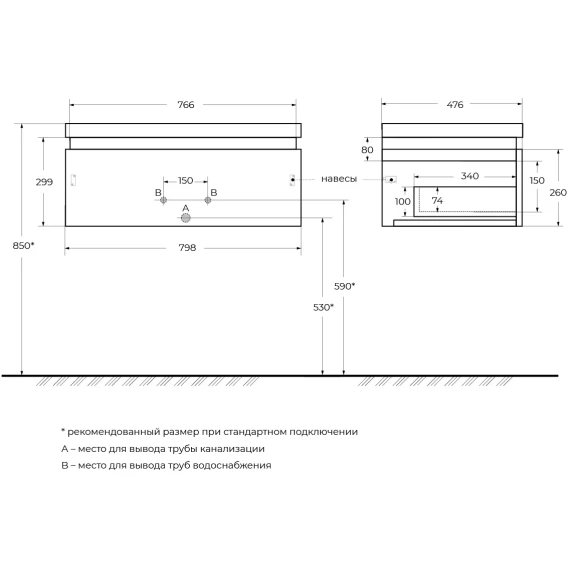 Тумба под раковину Cezares Slider SLIDER-800-1C-SO-NA-P 79,8 см, подвесная, орех дымчатый