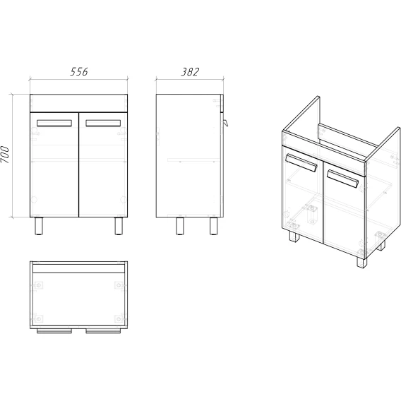 Тумба под раковину Grossman Нео 106027 55,6 см, напольная, белый глянец