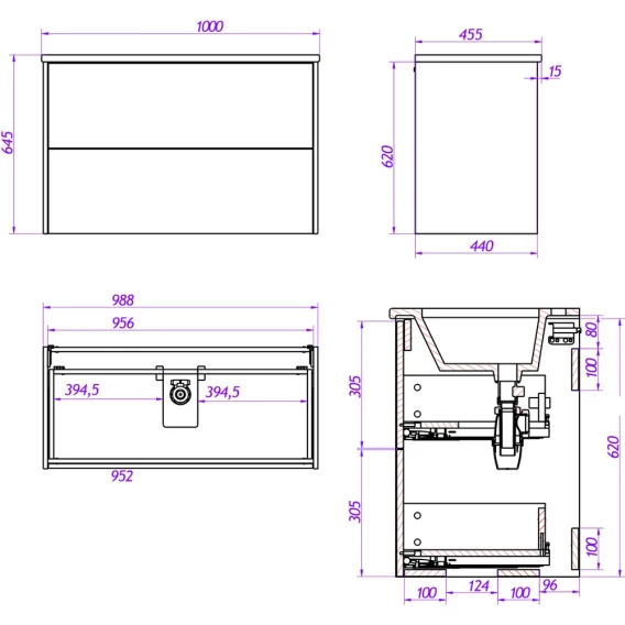 Тумба под раковину La Fenice Tesoro FNC-01-TES-DKK-100-2 98,8 см, подвесная, дуб канзас