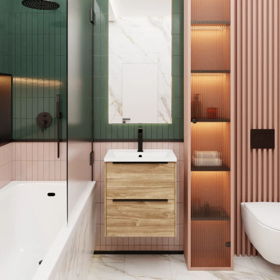 Тумба под раковину La Fenice Tesoro FNC-01-TES-DKK-60-2 59,4 см, подвесная, дуб канзас