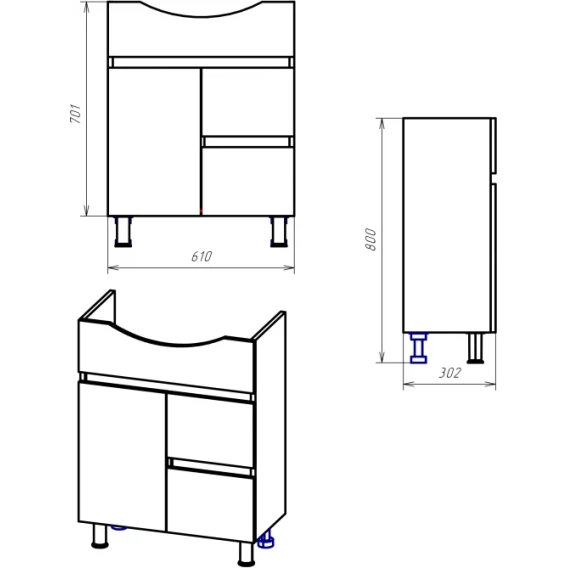 Крепление, Механизм доводчика, Ящик, Полочка, Ножки
