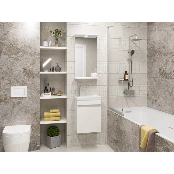 Тумба под раковину Misty Эко Мини Э-ЭкоМ01040-П 39 см L/R, подвесная, белый глянец/белый матовый
