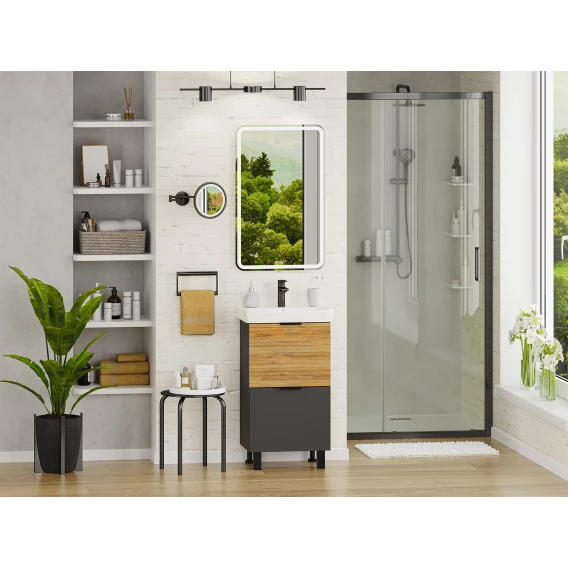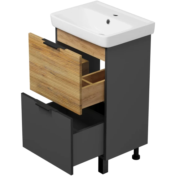 Тумба под раковину Misty Форест Э-Фор-07050-0219-2Я 44,4 см, напольная, дуб вотан/антрацит матовый