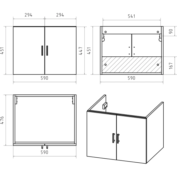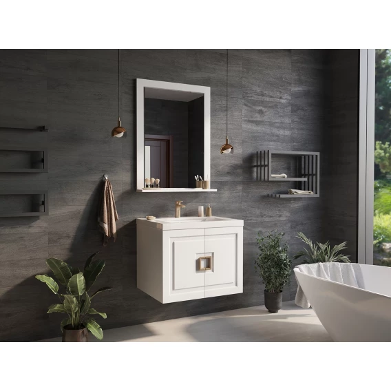 Тумба под раковину Misty Галвер Пр-Гал06060-0011По 59 см, подвесная, белый матовый