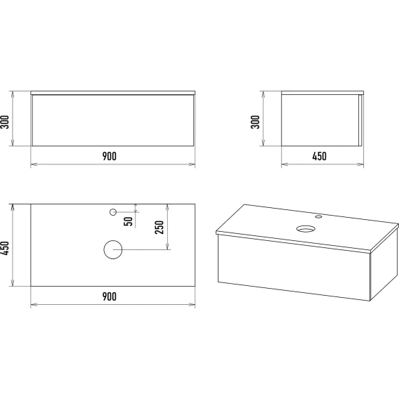 Крепление, Ящик, Система "Push-to-open", Столешница