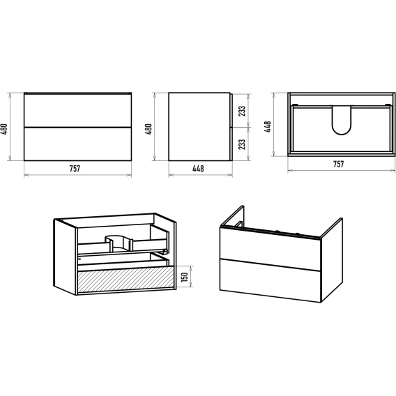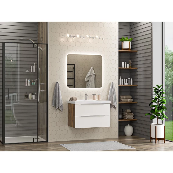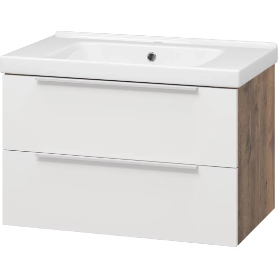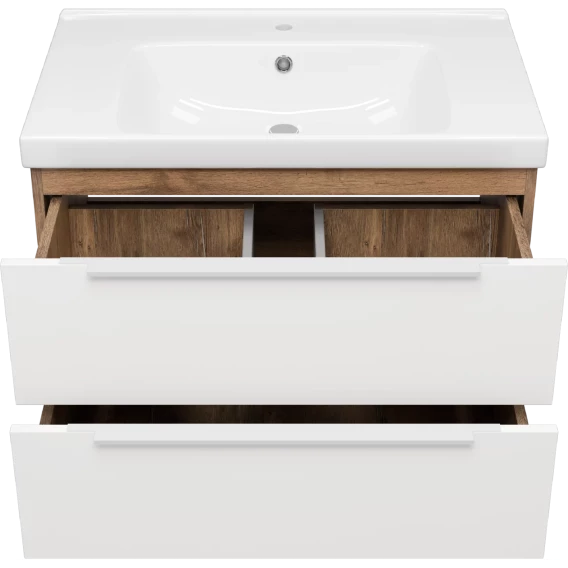 Тумба с раковиной белый/дуб 80 см Jorno Ronda Ron.01.80/P/D-W + Y18293