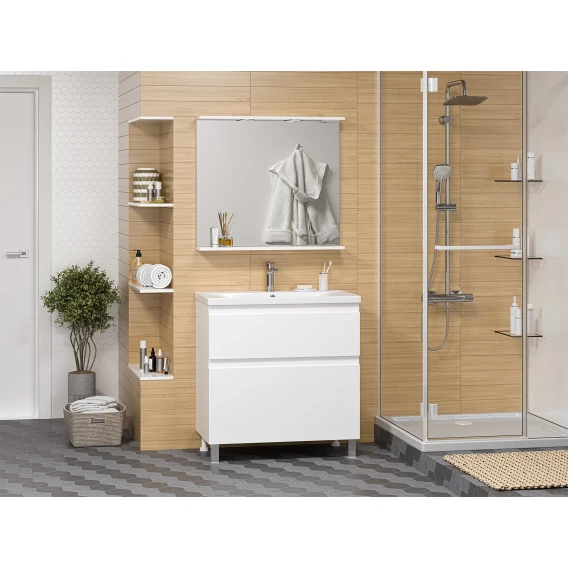 Тумба под раковину Misty Лаки П-Лак-01080-0112Я 80 см, напольная, белый глянец