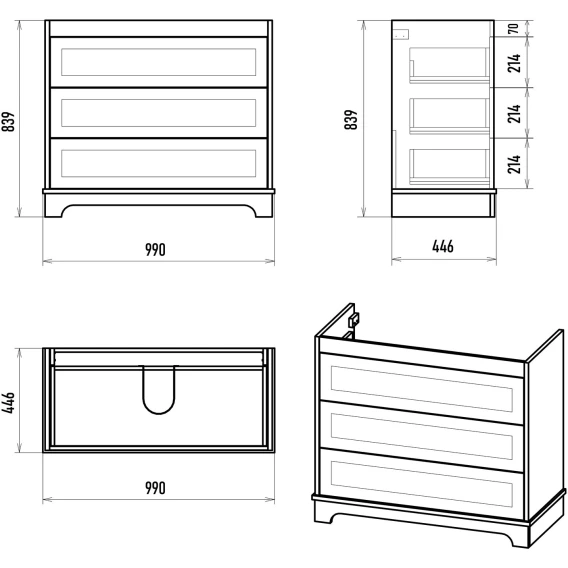 Тумба под раковину Misty Ларго П-Лар-07100-01-3Я 99 см, напольная, белый матовый
