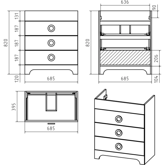 Тумба под раковину Misty Лейла Пр-Лей01070-013Я 68,5 см, напольная, белый матовый