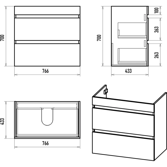 Тумба под раковину Misty Мира П-Мир-01080-012Я 76,6 см, напольная, белый матовый