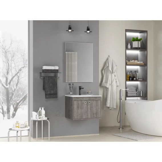 Тумба под раковину Misty Пайн Э-Пай-09060-19-2По 58,8 см, подвесная, темное дерево