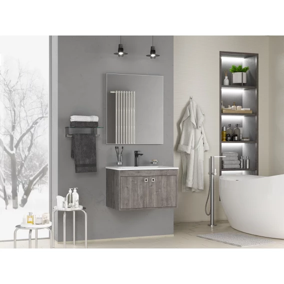 Тумба под раковину Misty Пайн Э-Пай-09070-19-2По 68,8 см, подвесная, темное дерево