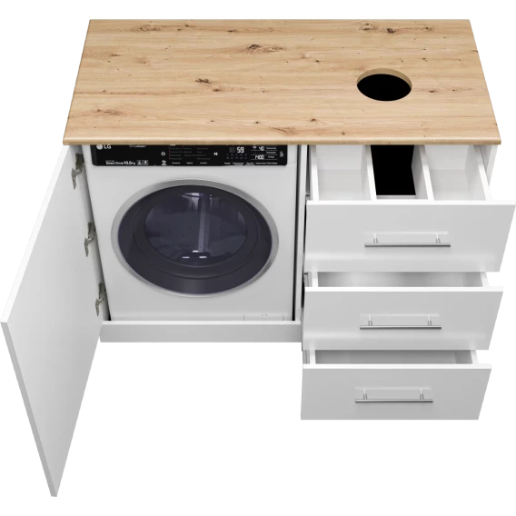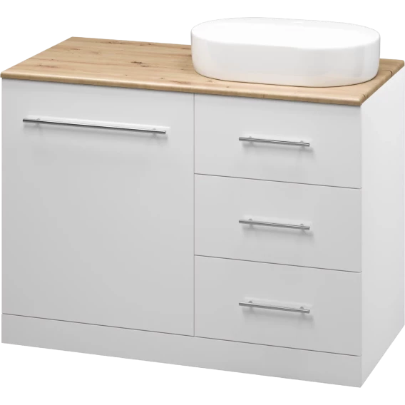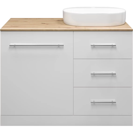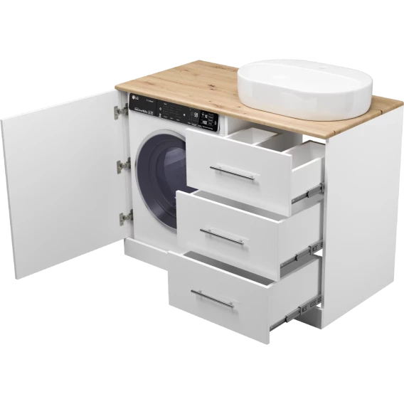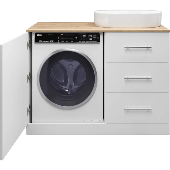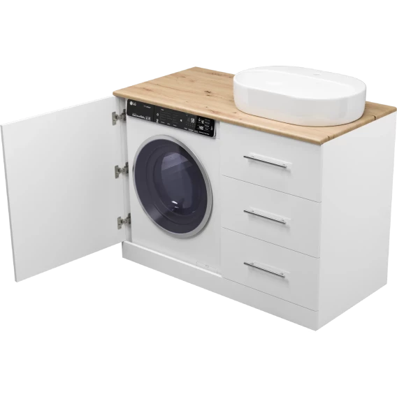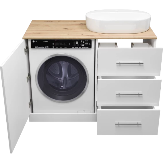 Тумба под раковину Misty Респект Э-Рес01120-13ЯП 120 см R, напольная, со столешницей, над стиральной машиной, белый глянец/светлое дерево