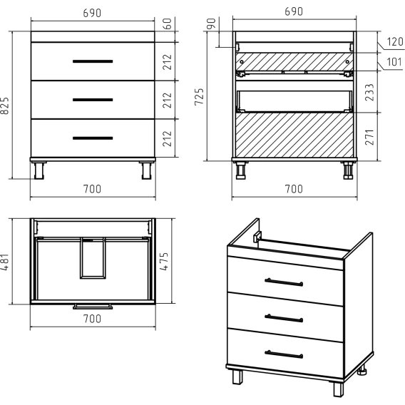 Крепление, Механизм доводчика, Ящик, Ручки, Ножки