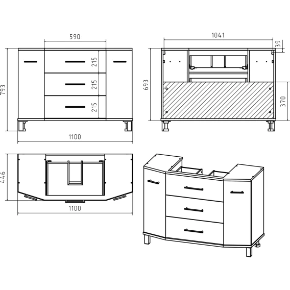 Крепление, Механизм доводчика, Ящик, Полочка, Ручки, Ножки