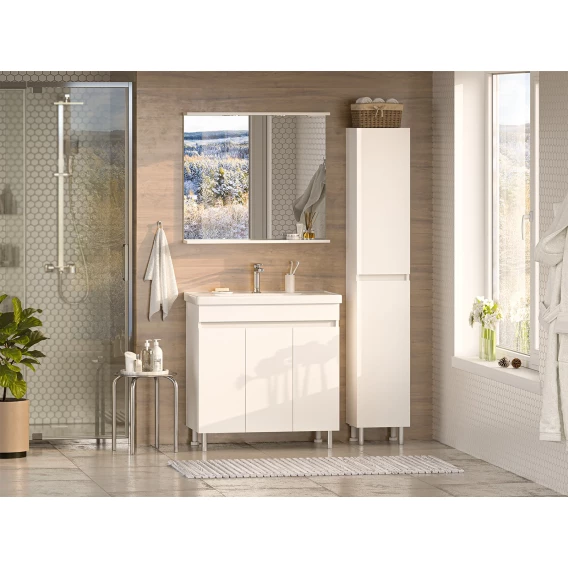 Зеркальный шкаф Misty Балтика Э-Бал04070-011 70x80 см, белый глянец